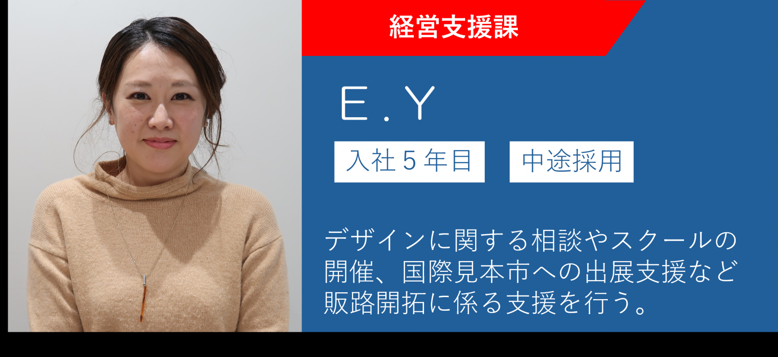 スクールやセミナーを企画運営しています。加えて、デザイン性の高い商品の海外展開支援として、国外の見本市への出展支援なども行っています。