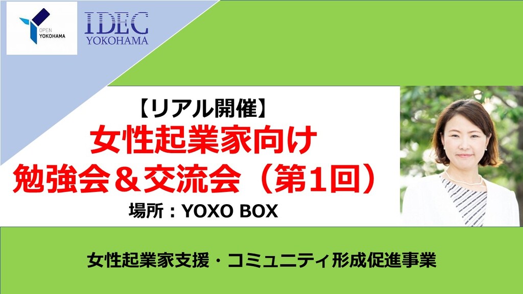 | 概要 | 第1回テーマ ~女性起業家が活用できる支援策について~ ・輝く女性起業家プロモーション事業について ・IDEC経営相談窓口について ・小規模事業者持続化補助金の活用事例案内 ・横浜市女性起業家コミュニティ Slackのご案内 |